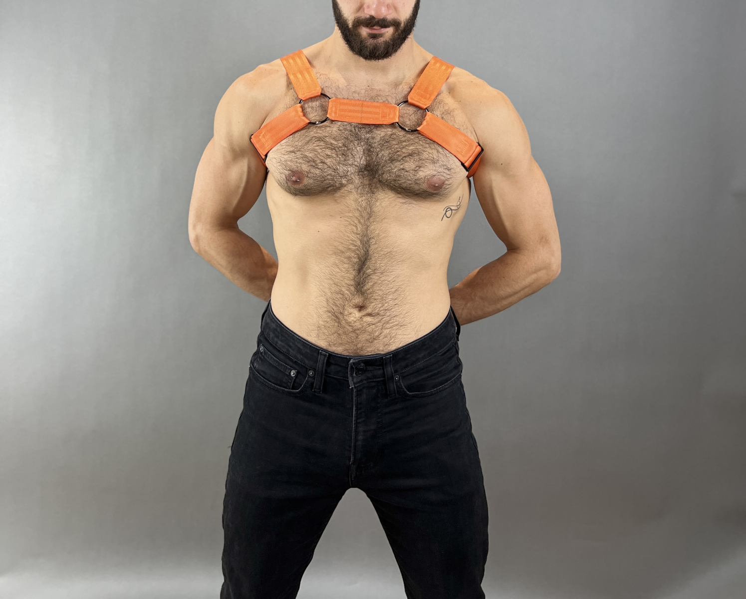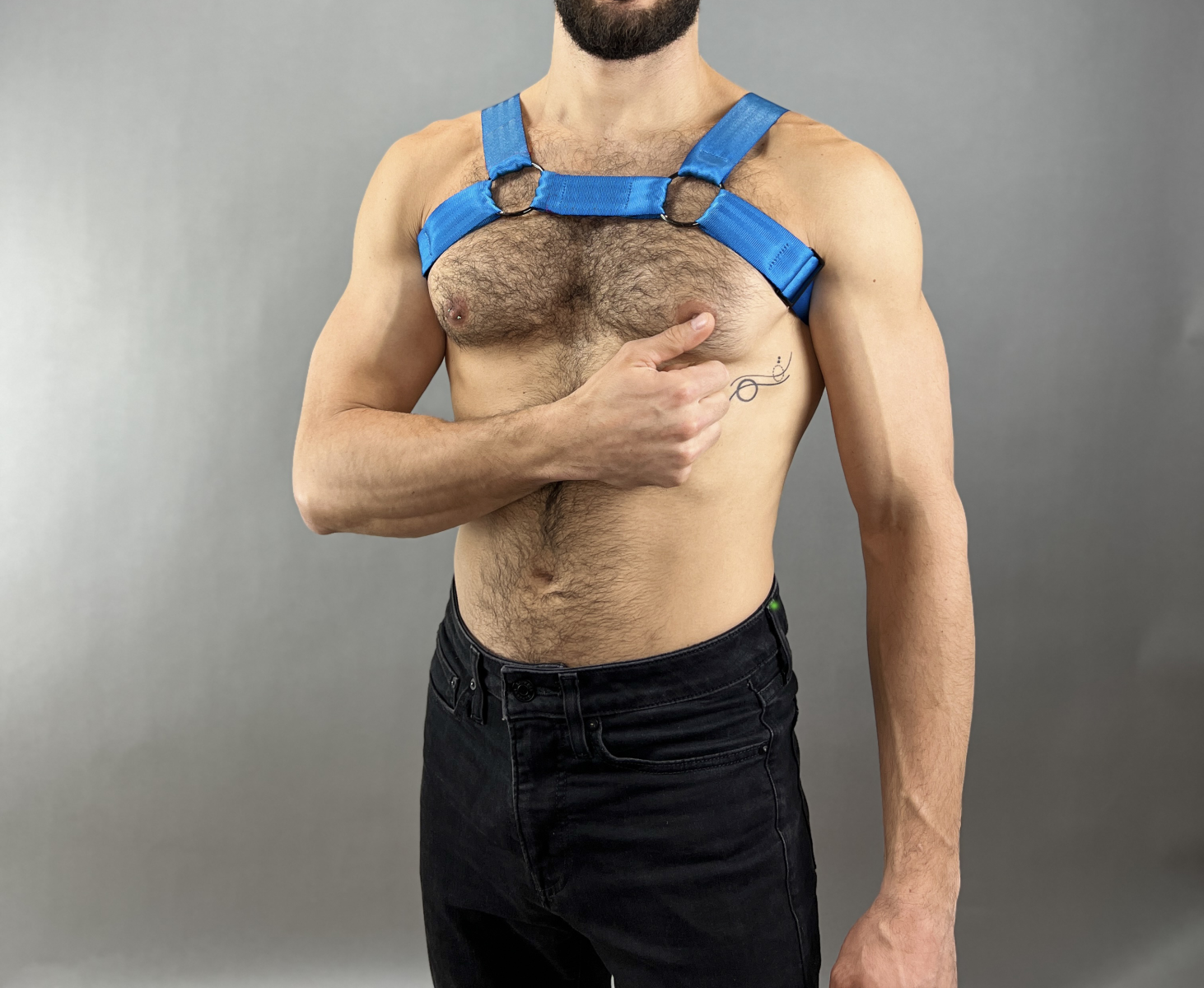 Here’s a bulldog that loves a bath. These nylon harnesses are tough and durable and don’t mind getting wet if, say, you fall naked into a swimming pool of sexy humans.